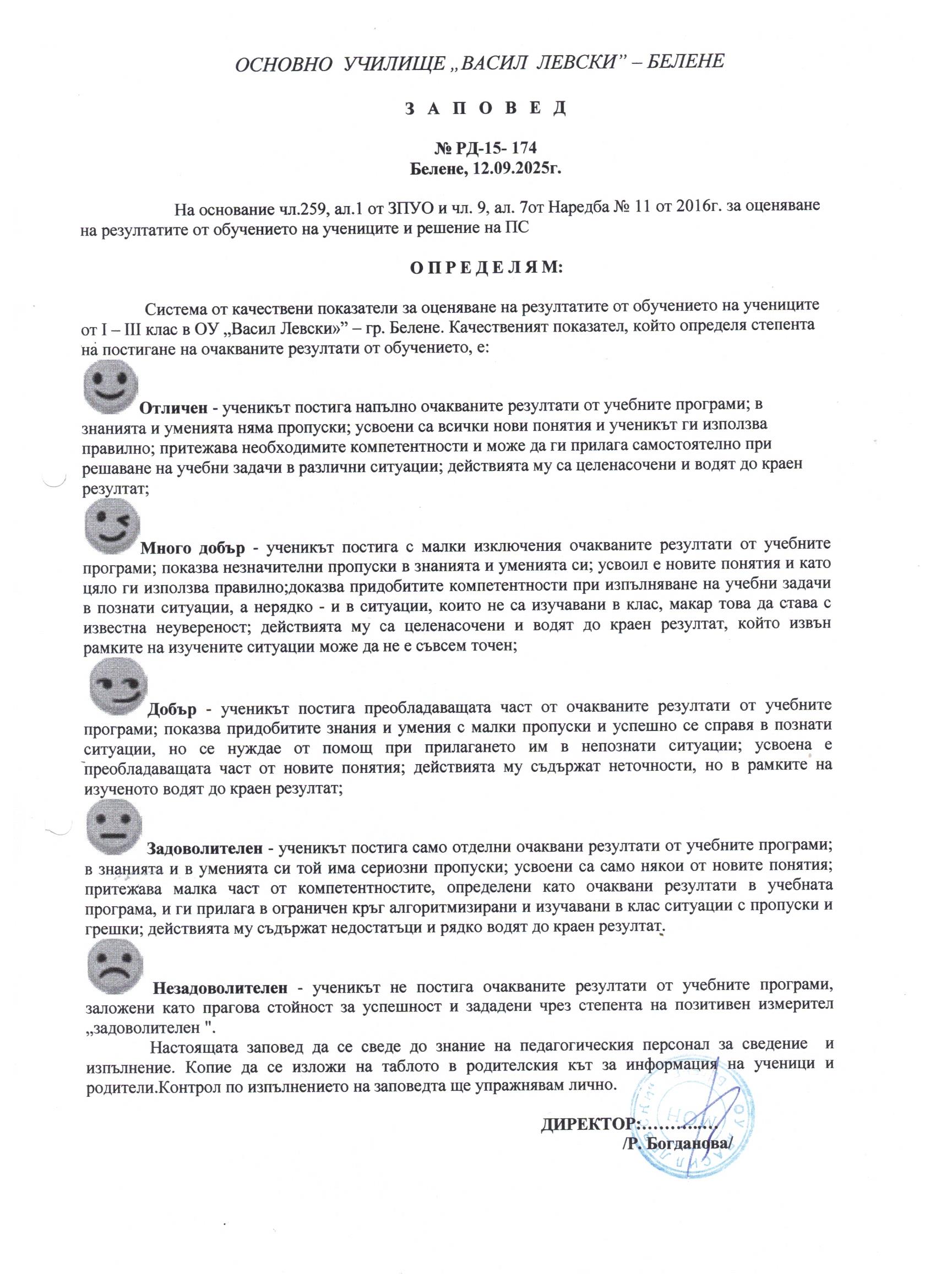 Система от качествени показатели за оценявяне на резултатите от обучението на учениците от I-III клас