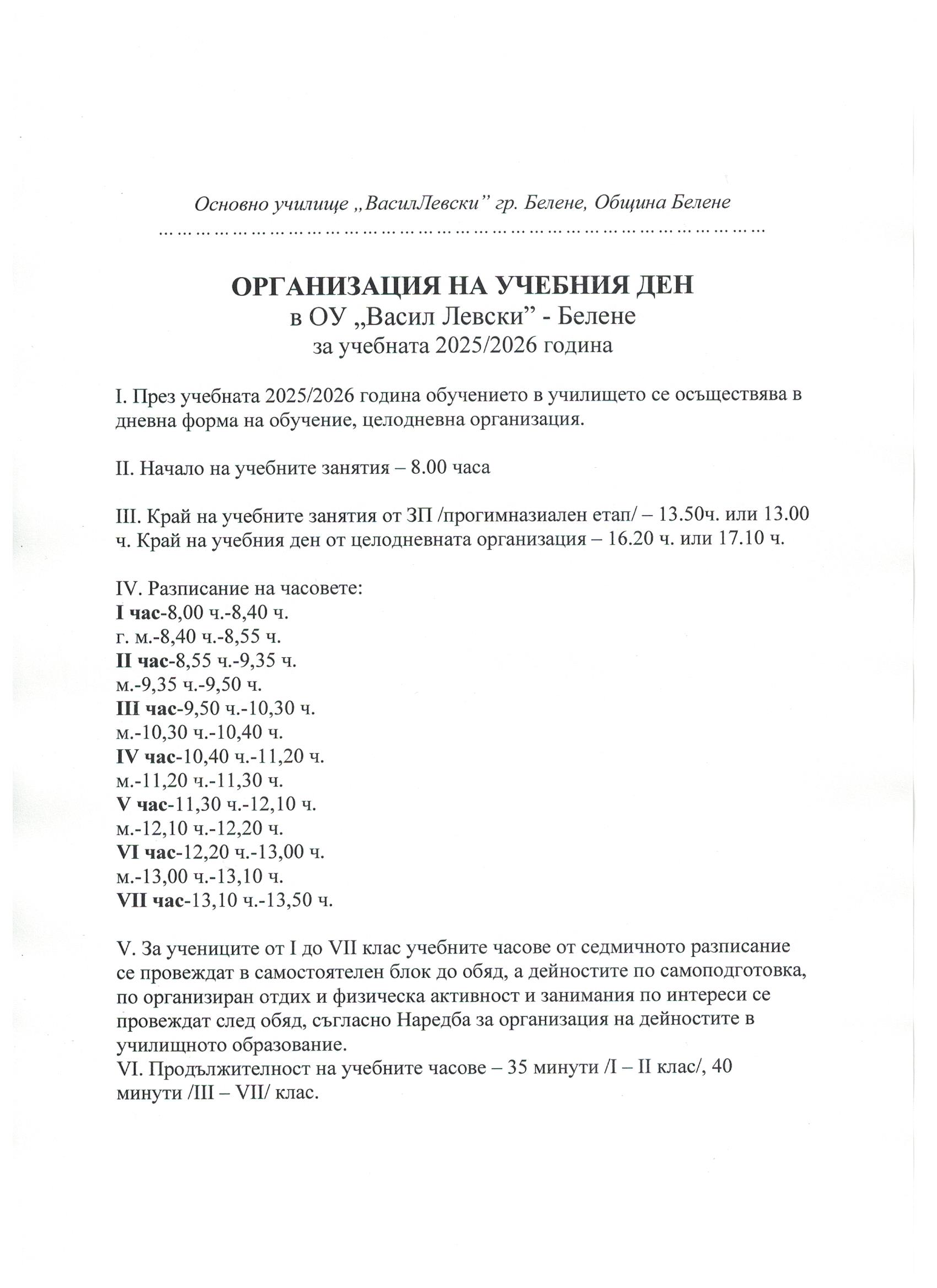 ОРГАНИЗАЦИЯ НА УЧЕБНИЯ ДЕН