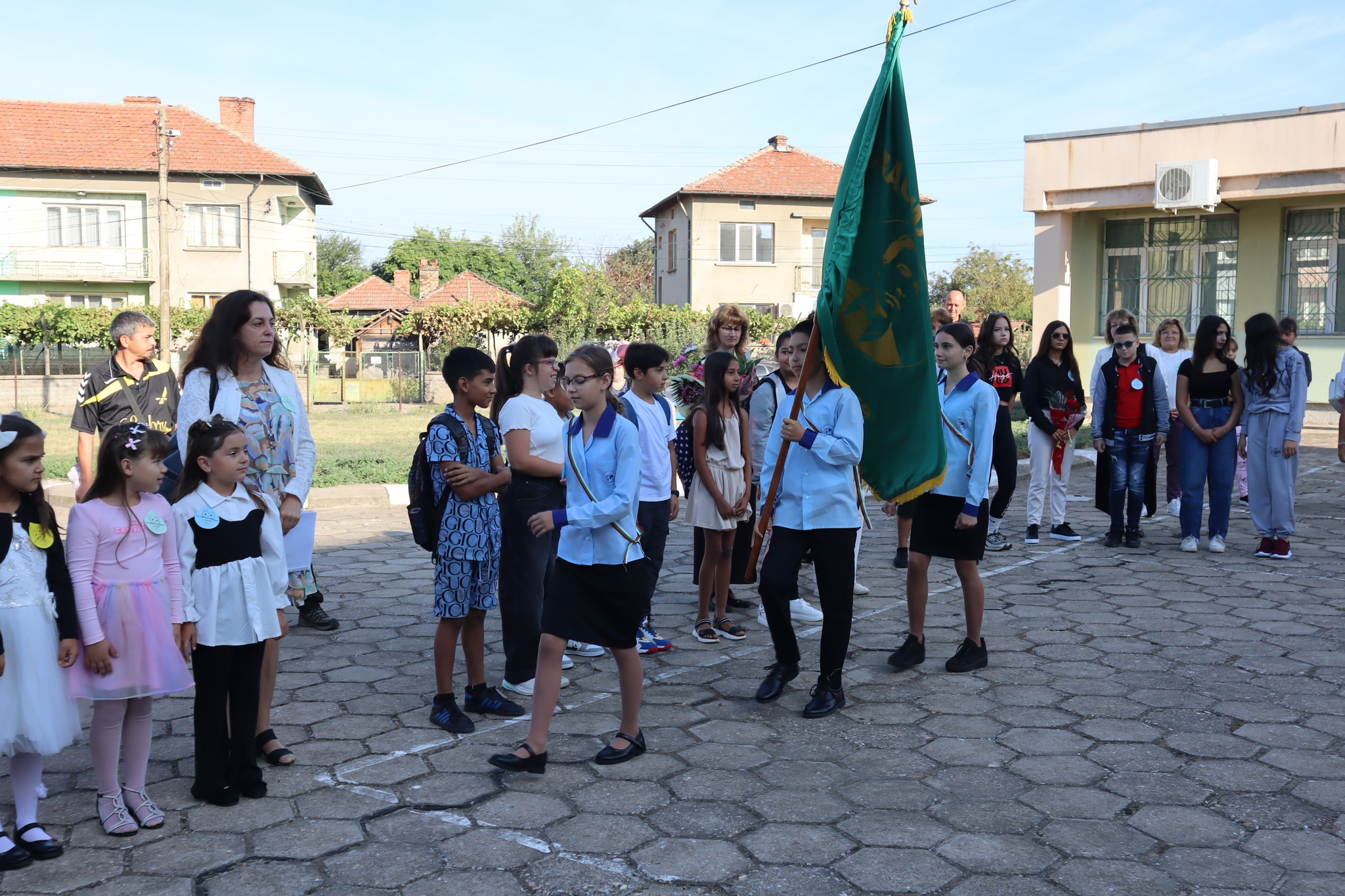 Част от празничната програма бе посрещането на знамето на училището, вдигането на българския трибагреник, разиграването на кратък спектакъл, в който главни участници бяха учениците към училището.