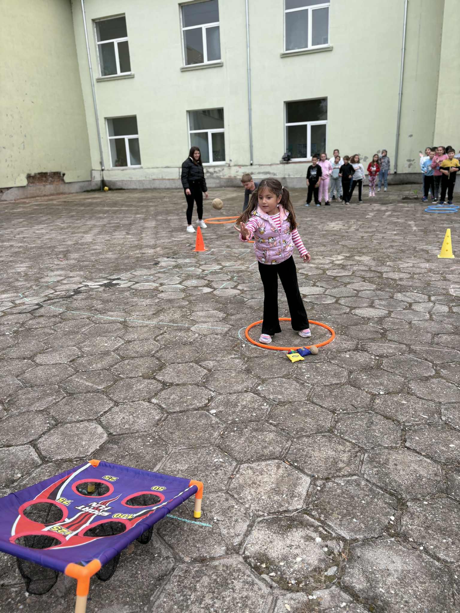 Дворът на училището, огласен от радостни възгласи, събра децата, които се състезаваха в различни спортни дисциплини.