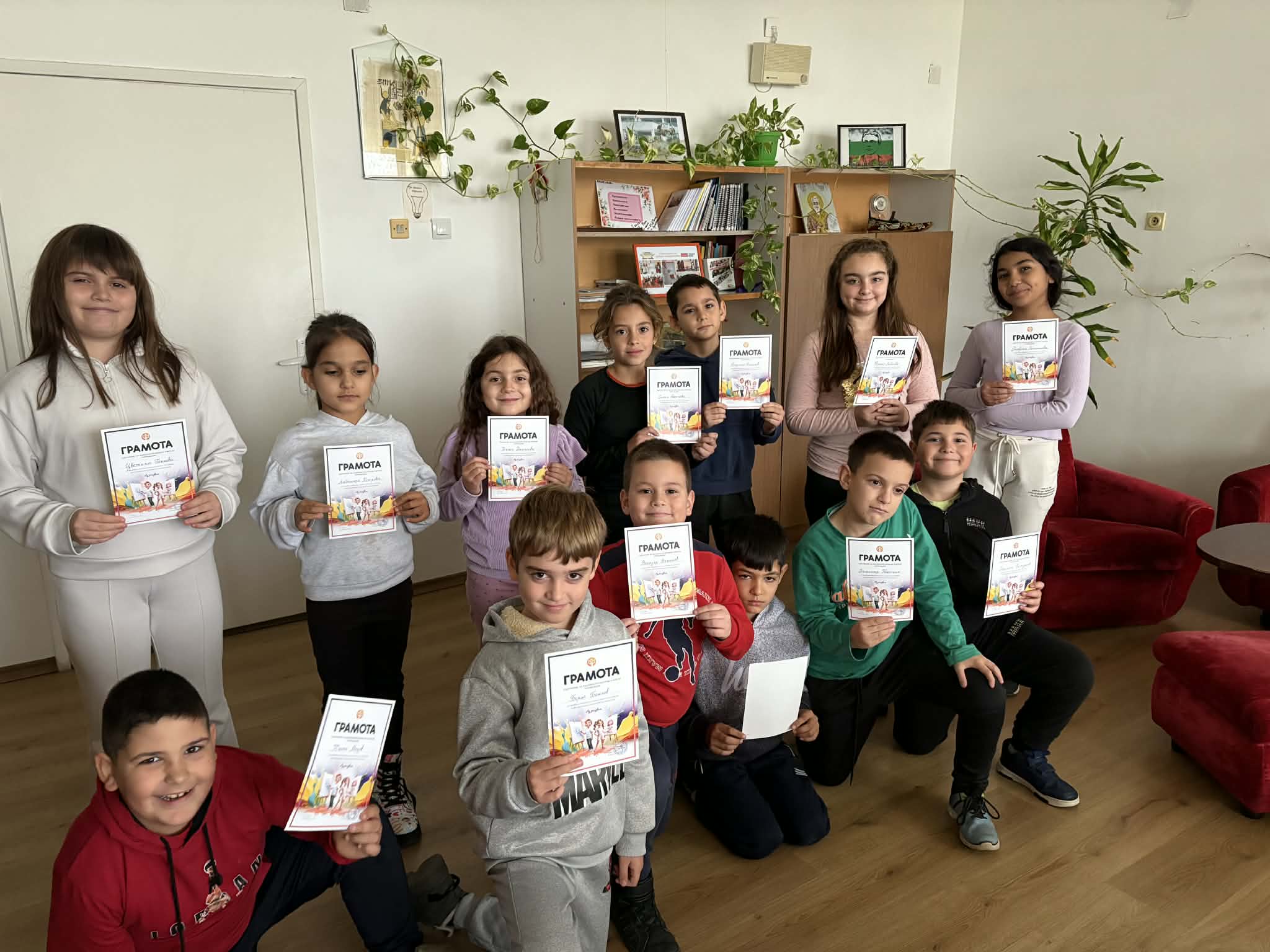 Грамоти за ученицете в първия кръг от състезанията на СБНУ „Аз рисувам.“