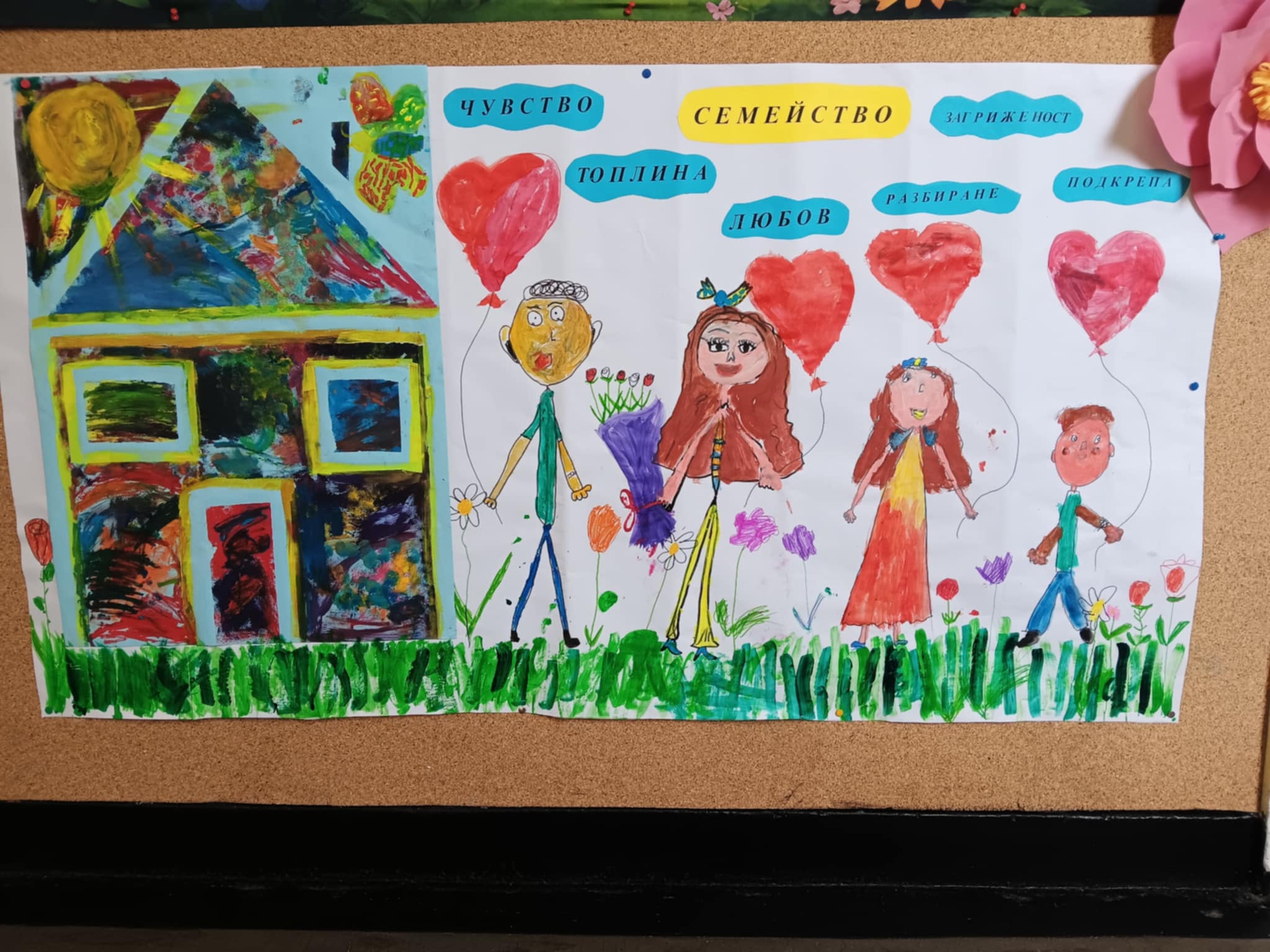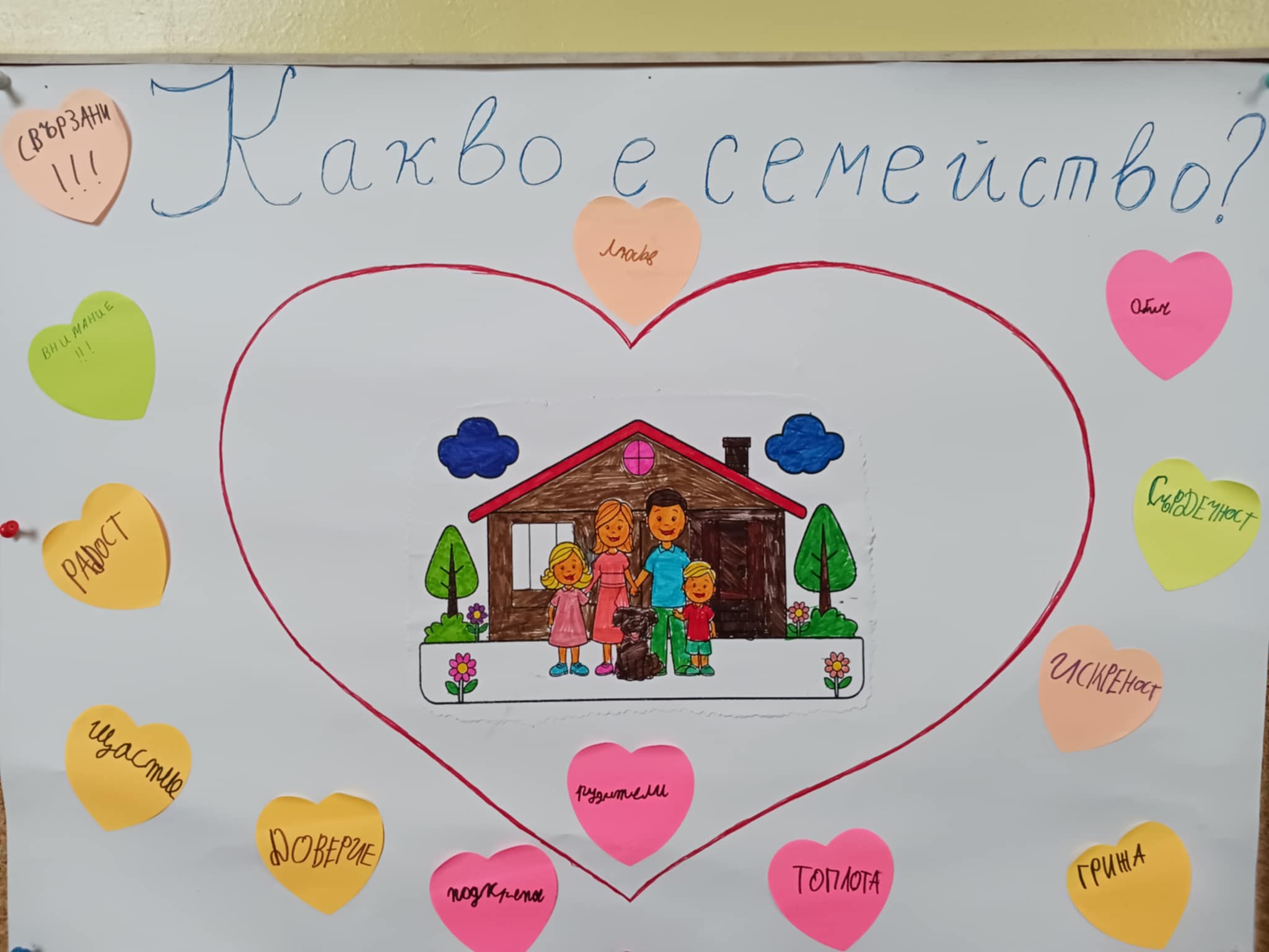 На 21 ноември църквата отбелязва Въведение Богородично, а денят е известен като празник на християнското семейство. На този ден цялото семейство се събира, за да почете празника. За думата „СЕМЕЙСТВО“ първокласниците споделиха и изобразиха върху платно най-важните и хубави мисли за тях, като мама, татко, любов, чувство, топлина, загриженост, разбиране, подкрепа, обич… А накрая си нарисуваха и оцветиха къща – символ на любовта и разбирателството в едно семейство.