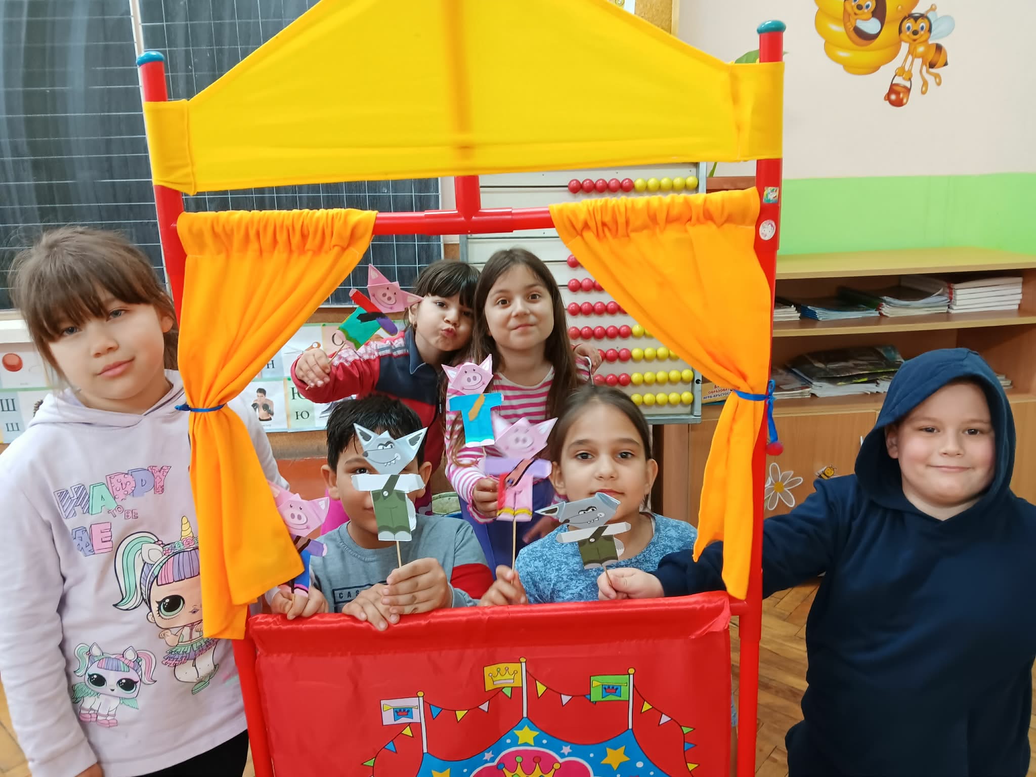 В часа по Технологии и предприемачество първокласниците изработиха любими герои за куклен театър, с които пресъздадоха приказката „Трите прасенца“ по Братя Грим.